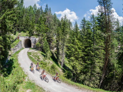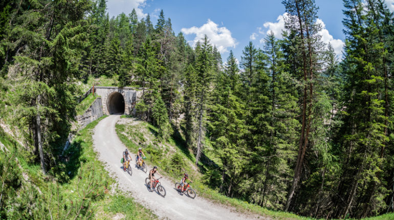 De Villabassa/Dobbiaco você começa na ciclovia no Vale Höhlenstein, passando pelo lago Toblach e pelo cemitério de War. Esta área foi usada como frente durante a 1ª Guerra Mundial. Você continua passando pelo lago Dürrensee (à esquerda você pode ver o famoso Drei Zinnen/Três Picos); a ciclovia sobe ligeiramente antes de chegar à fronteira – Gemärk/Cimabanche – da região do Tirol do Sul e da região do Veneto. A partir daqui você pedala em direção ao sul até Cortina d’Ampezzo.