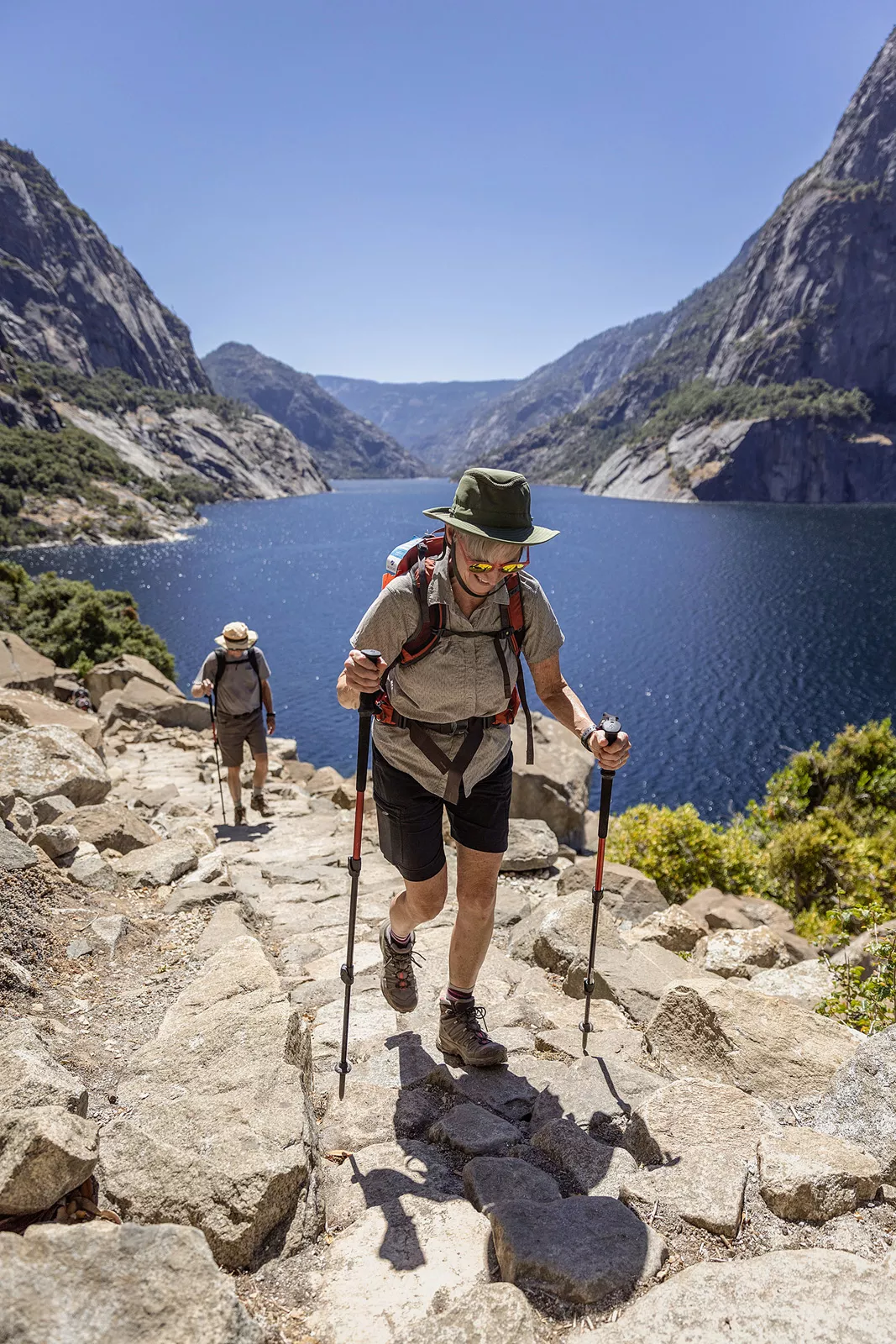 Durante nossa caminhada ao longo da lateral e acima do reservatório, você descobrirá por que Hetch Hetchy é conhecido por alguns como “Pequeno Yosemite”, com suas cachoeiras e cúpulas imponentes que imitam alguns dos marcos icônicos do Vale de Yosemite. Apreciar as vistas panorâmicas infinitas das Cataratas de Wapama, da represa e do reservatório tornará difícil decidir onde parar ao longo da trilha para almoçar. Após a conclusão da caminhada, retornaremos a Rush Creek com tempo suficiente para relaxar antes da nossa última noite juntos. Hoje à noite, nos encontraremos para uma recepção de despedida e um jantar para celebrar nossa semana de aventuras em Yosemite!